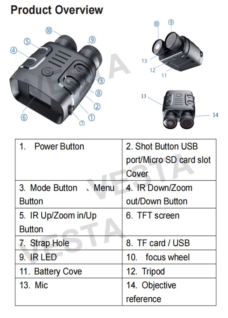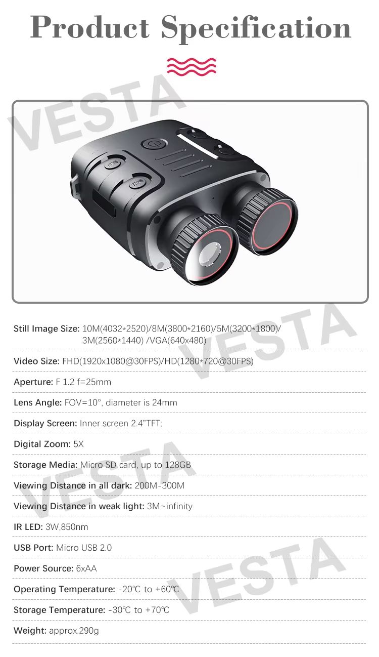 R18 binóculos 2, 4 polegadas visão noturna personalizado infravermelho completo escuro visão 5x digital zoom para caça